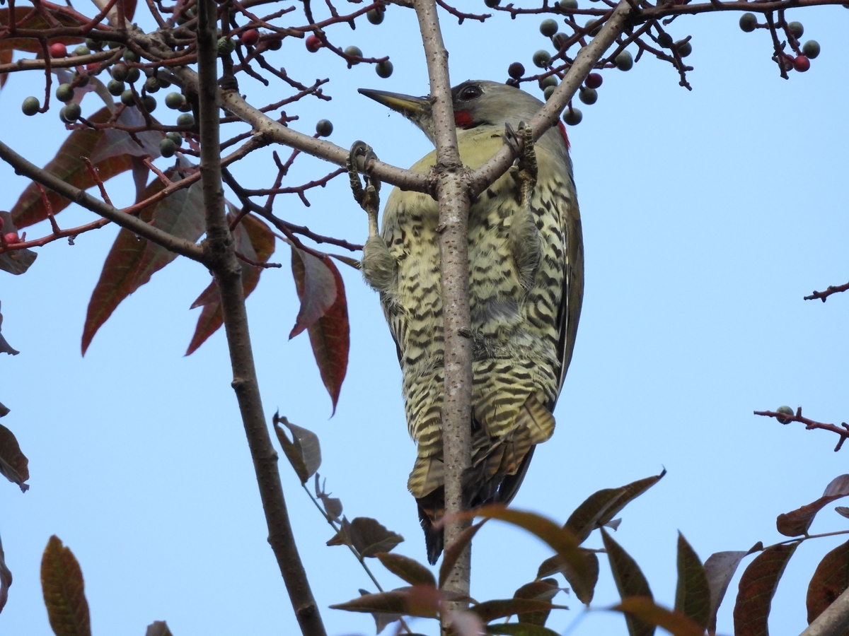 この並木を上がり、薬樹園へ向かいました。秋は薬樹園のカイノキ・ゴシュユの実とバードバス(野鳥の水浴び場)が野鳥たちに人気です。ムギマキ狙いで狭い薬樹園に50名以上のバーダーが集まっていました。