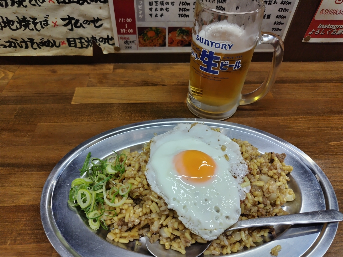帰りに神戸の新開地で明石焼き屋が閉まっていたのでそばめしを食べました。